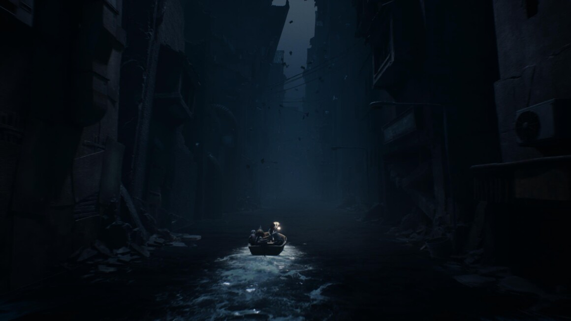 Puisque le titre est jouable en coopération, l’histoire met en avant un duo d’orphelins, un frère et une sœur, apparemment revenus sur place pour sauver des camarades d’une mort certaine. Comme dans Little Nightmares, la narration est très discrète, les personnages ne parlent quasiment jamais et la fin est largement sujette à interprétation. Peut-être même un peu trop, et on espère que les DLC apporteront des éléments de réponse à nos interrogations. Quoiqu’il en soit, c’est aussi l’environnement qui nous donne les indices sur ce qu’il se passe. Pour se déplacer, les enfants peuvent cette fois utiliser une barque, ce qui permet d’apporter un monde légèrement plus ouvert et quelques nouveautés de gameplay bienvenues.